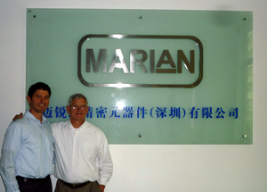 Bill Witchger 和 William Witchger 站在迈锐深圳公司的标志前,2010年开张。